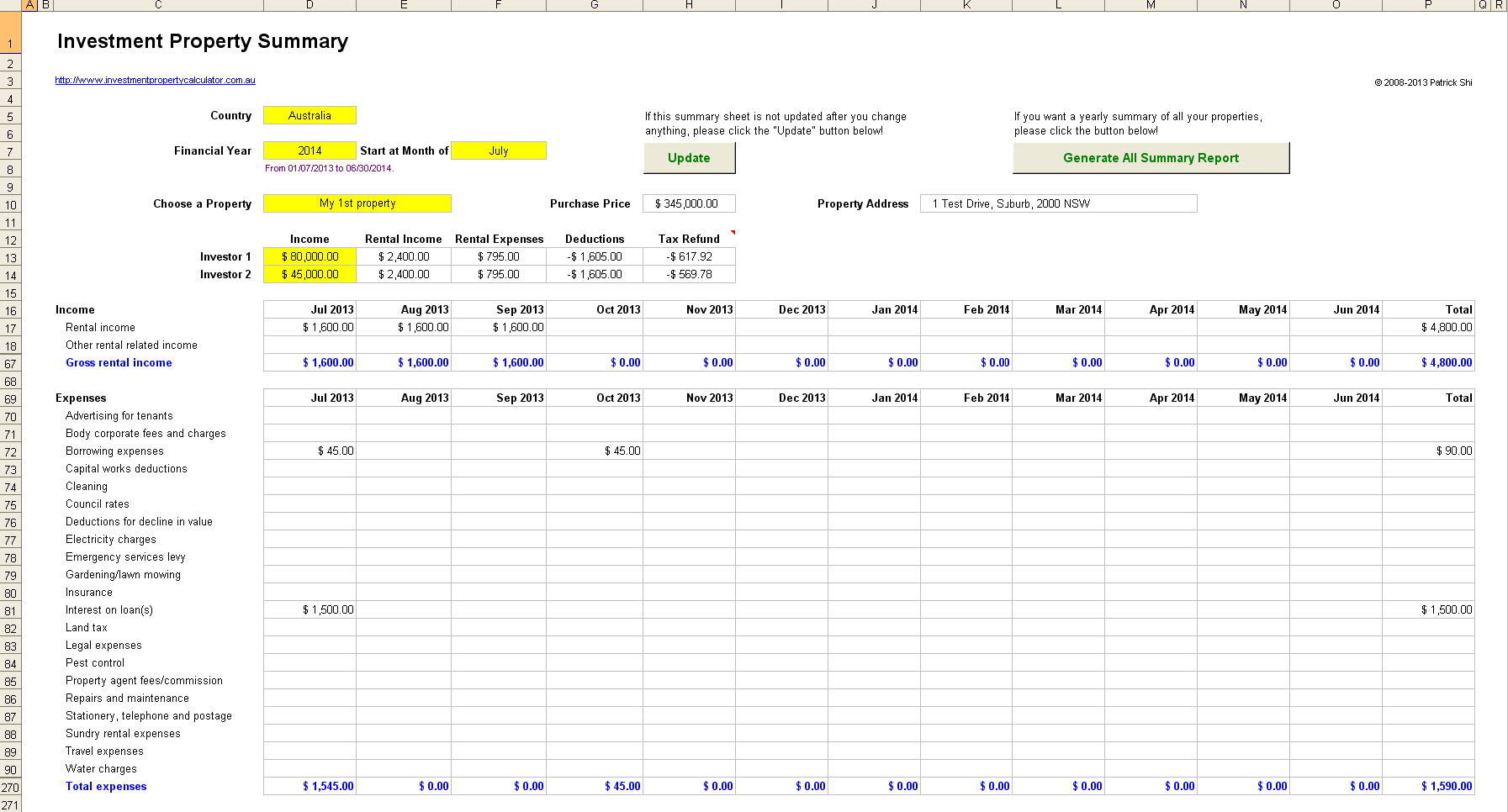 Here are some screenshots that will give you a better idea that what you need to do and what this Investment Property Record Keeping Spreadsheet can do for you.