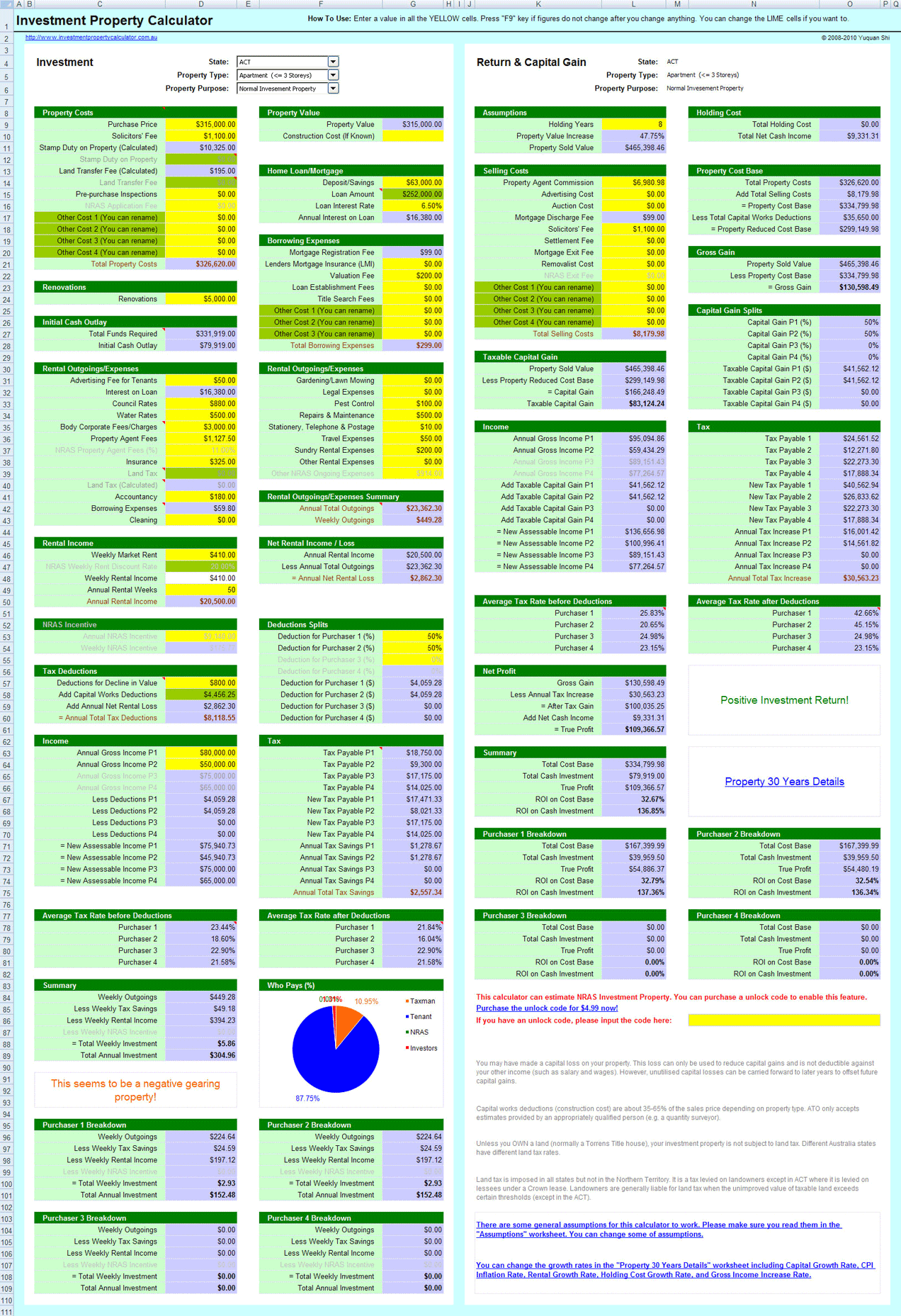 This Standard Investment Property Calculator give you much more information on costs etc that the Free version does not.